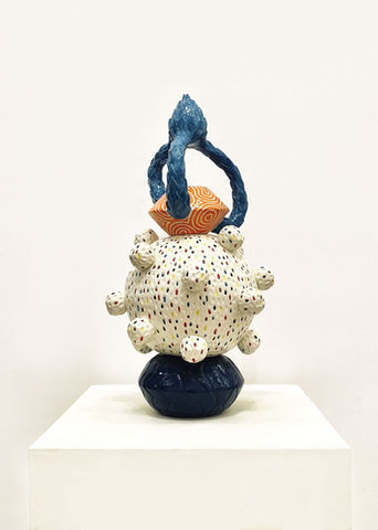 A partir do crochê e da cerâmica, Ponte cria esculturas e desenhos que simbolizam a durabilidade do trabalho manual e contrastam com a efemeridade da era digital. Seus trabalhos, que começam com manchas de tinta acrílica, são enriquecidos por linhas que formam padrões intricados, realçando a beleza do processo criativo.