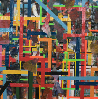 Suas pinturas dialogam com o espaço urbano através de fragmentos fotográficos e da experimentação da colagem. Na busca por imagens, objetos, lugares e materiais, a artista desenvolve processos que instauram uma nova geometria.
