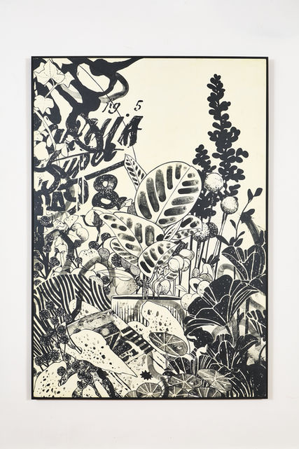 Usando apenas material de construção, procurei resgatar o que foi apropriado pelo virtual. Compensados de madeira, tinta para piso ou automotiva, pincéis de parede. Como que para reconstruir o que foi tomado fosse necessário construir uma realidade tangível. O contraste da tinta preta sobreposta à brancura da tela, do liso, encerra a calmaria do vazio. Latas vazias, restos de obras e objetos ordinários do dia a dia. Escombros, sobras e descartes estão à margem da funcionalidade e da estética. O descartável é efêmero na forma, mas atemporal na matéria. O desgaste e a decomposição geralmente não são considerados elementos positivos sobre o caráter atemporal que uma obra de arte deveria ter, pois contrapõe a ideia de duração. Mas afinal, quanto tempo o tempo tem?